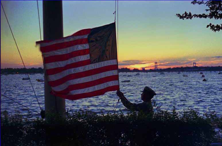 A milestone image… my first dye-transfer print, made at Peterson Color Lab, whose owner, Glen Peterson, became more than a mentor. His inspiration propelled me. The picture shows "Rocky" taking down the flag at the Douglaston dock. Fort Totten and the Throgs Neck Bridge are in the background, across Little Neck Bay.
