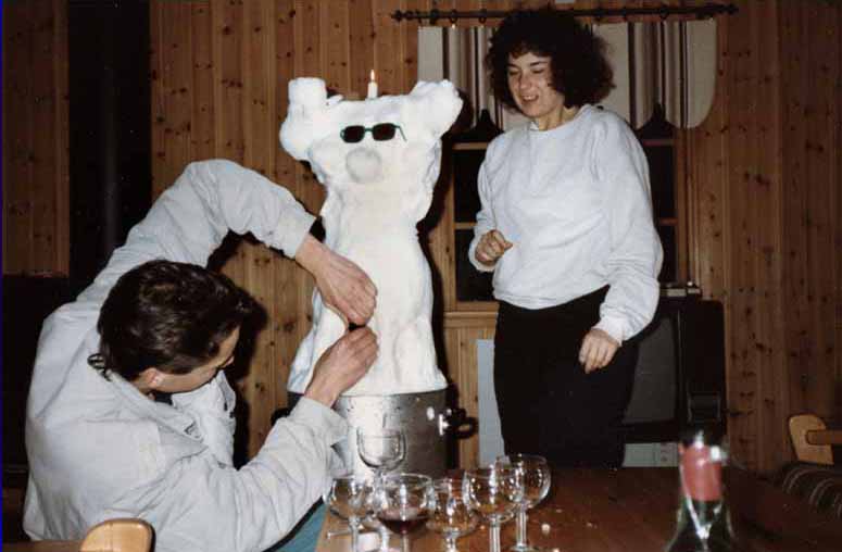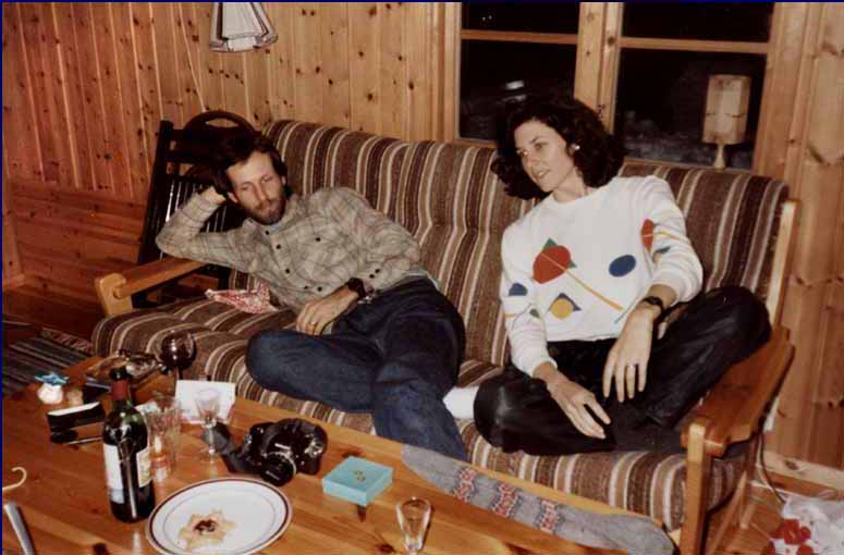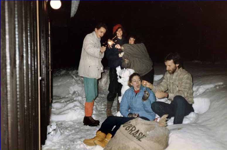 By the winter of 1984 Sandra and I had been in Sweden for 10 months. We were doing Saab and Volvo simultaneously with two groups of freelancers, mostly from the Incredible Slidemakers and Image Stream families. AVC sent us all on a Christmas ski trip. Left to right: Andreas Wherli, Susan Shields, Wendy Kauffman, Sandra Sande (seated) and Kark Shields.