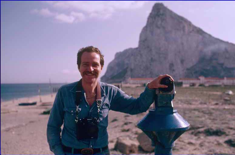 Bengt Sundlin snapped this at Gibraltar when the two of us made the haul down there from a Saab shoot in Malaga, Spain. From our base by the beach we would drive into the Sierra Mountains to shoot the new Saab 9000 in relative secrecy. . Bengt didn’t mind complicated set-ups and one night watched as he set up colored strobes around a replica Rodin “Thinker” …in 25 below zero Celsius weather.