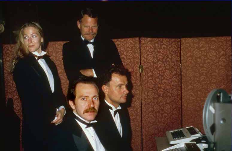 All decked out for the world premier of the Saab 9000, at Kolmorden, Sweden. Behind me are Sandra Sande and Bo Ströman, AVC’s account manager for Saab. Next to me is Kjell Gustafsson, staging. It was a brand new luxury hotel but the power took huge hits from the kitchen and we couldn't get the show to work. In the end an Army generator was called in, and that’s what ran the show.