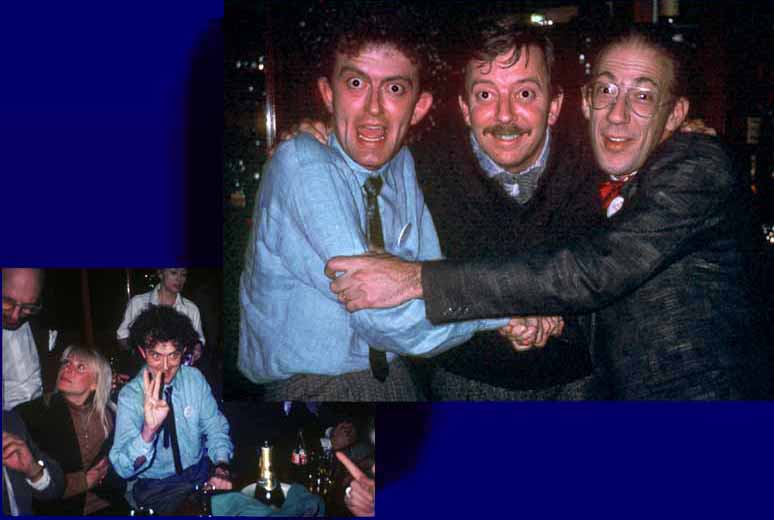At the awards banquet for the Swedish Bildspels (Slide Show) Festival, Kurt Helte, founder and Managing Director of AVC, AB -- Audio Visual Centrum -- in Stockholm (left) clowning with artist Rune Soderqvist. Kurt is wearing Incredible's "No Charge for Dust!" button as an eye patch. Above, Kurt is seen with Maria Lindstrom, his personal assistant.