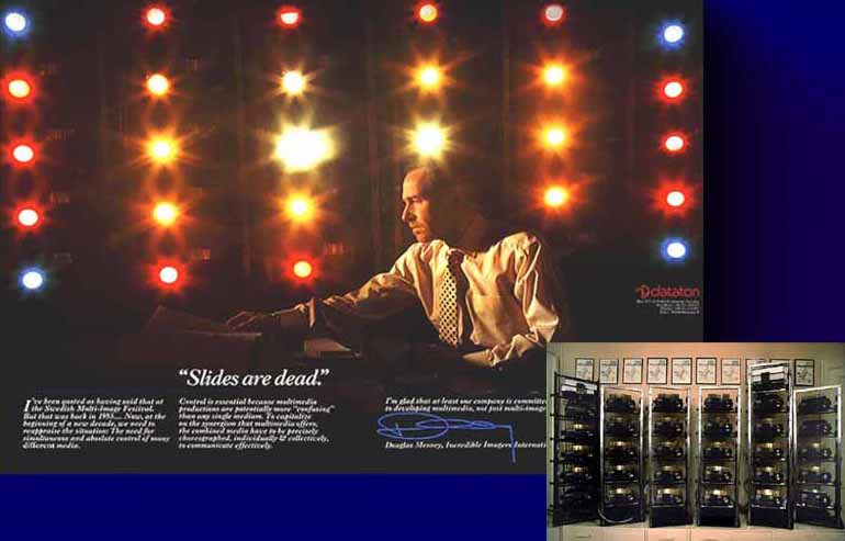 I received the Mediatech Programming Award twice, the first time an Ikea show, “Building It Is Half The Fun.” The actors played in slow motion while we shot at 4 frames per second using Nikons with motor drives and 250-exposure backs. The animations were played back using 15 projectors aimed at a single screen. People were surprised slides could “move” and high-speed shows became my signature style for many years.